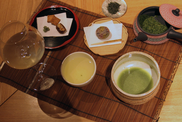 Lunch course includes alcoholic drink, small dishes, Japanese tea, and sweets.